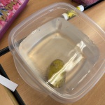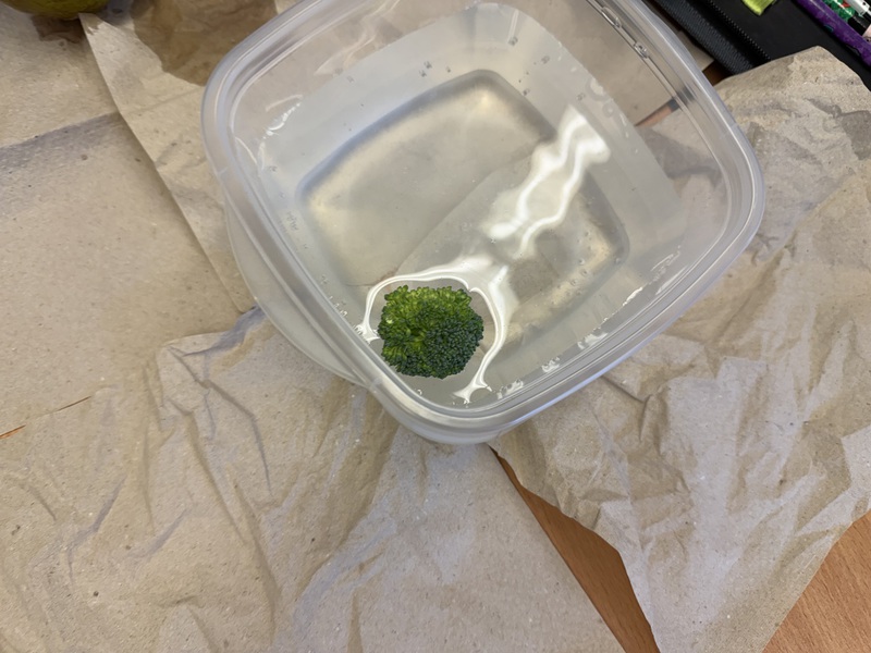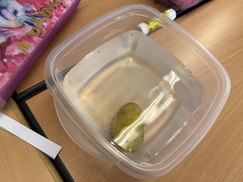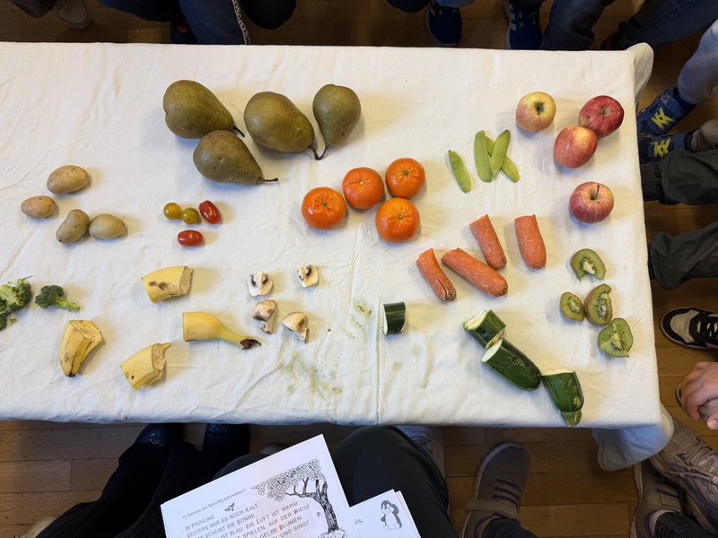 Heute haben wir untersucht, welches Obst und Gemüse schwimmt und sinkt. Und danach haben wir alles noch einmal mit Salzwasser ausprobiert.