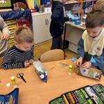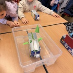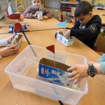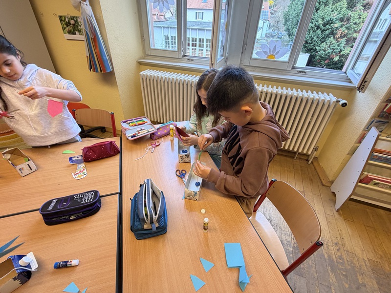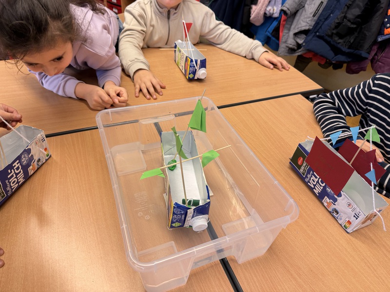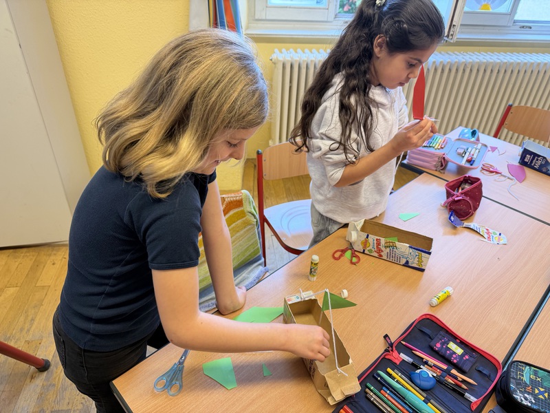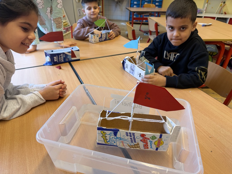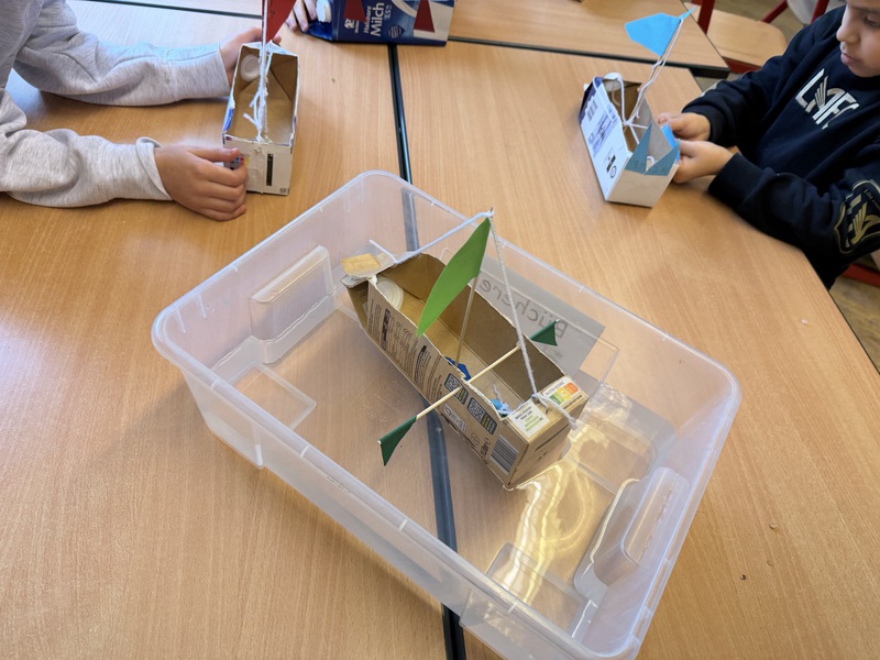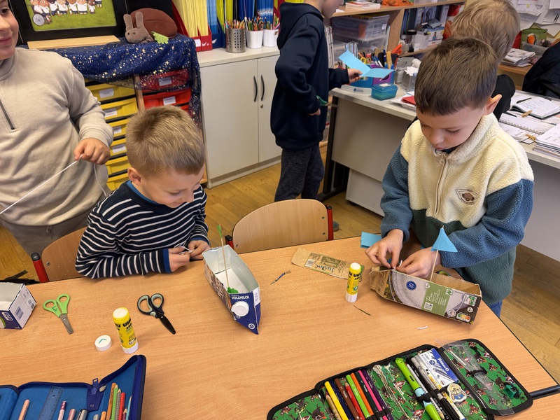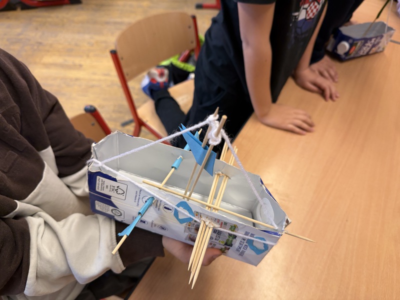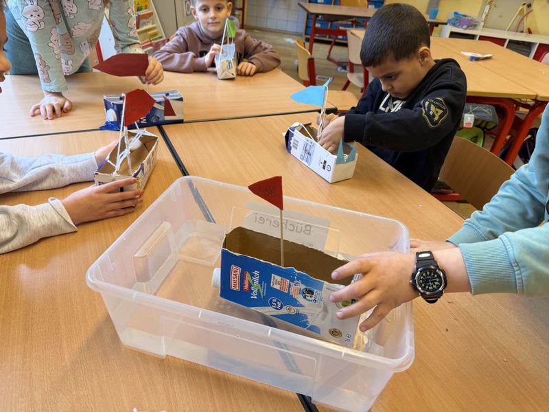 Aus Tetrapacks wurden heute fleißig Phantasieschiffe gebaut. Danach wurde ausprobiert, ob sie schwimmen können. Den Test haben alle Schiffe bestanden!